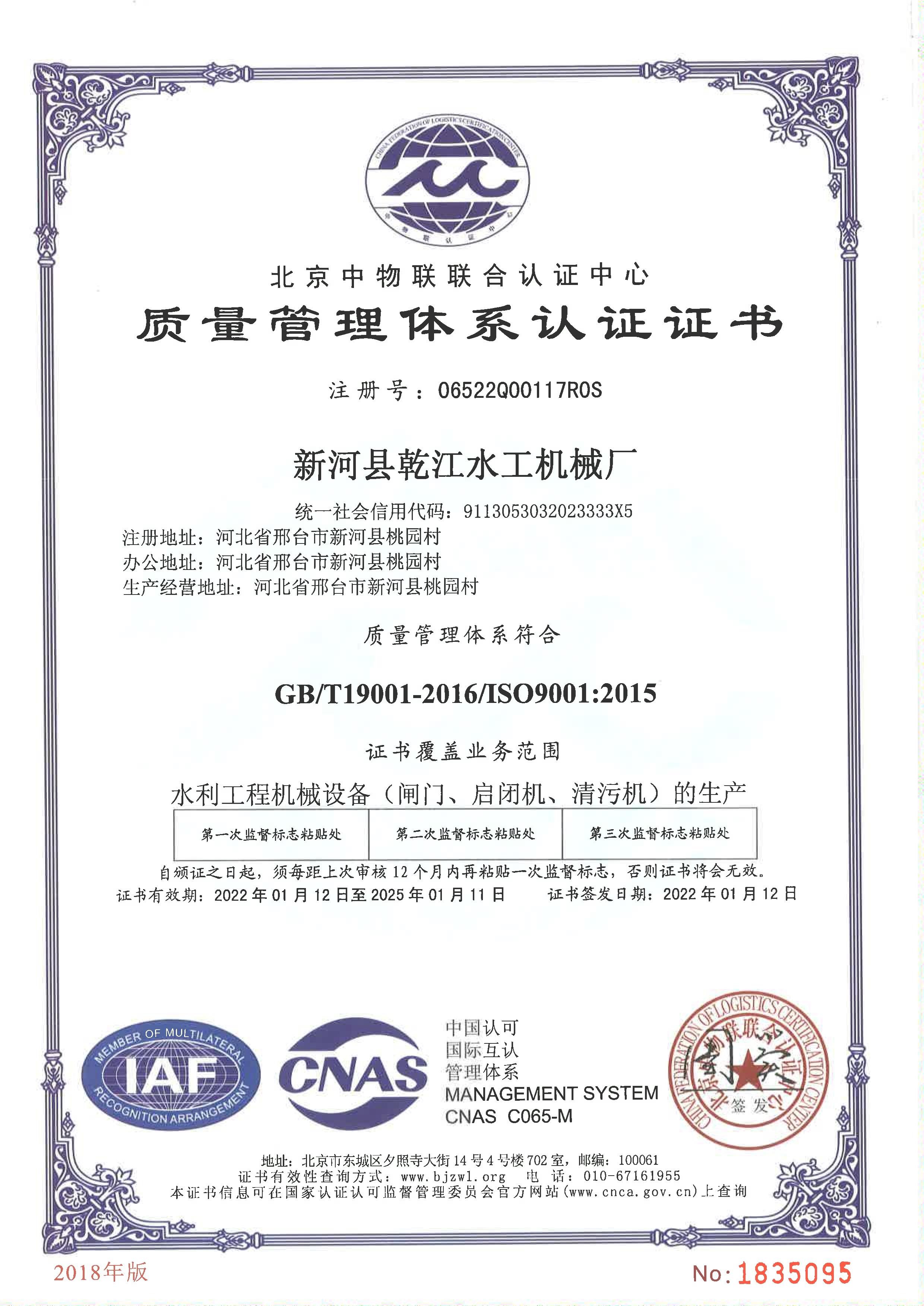 新河縣乾江水工機(jī)械廠坐落于河北省新河縣工業(yè)園區(qū),本廠是專業(yè)研發(fā).生產(chǎn)水利機(jī)械產(chǎn)品的廠家。本廠閘門.啟閉機(jī).清污設(shè)備等產(chǎn)品的技術(shù)上具有豐富的實際經(jīng)驗,并注重新產(chǎn)品的開發(fā)研制。        啟閉機(jī)類:QL